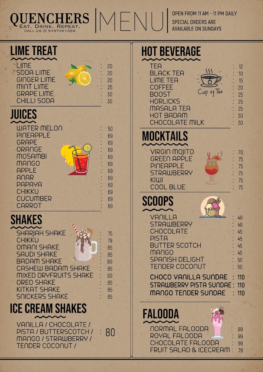 Quenchers Cafe Menu